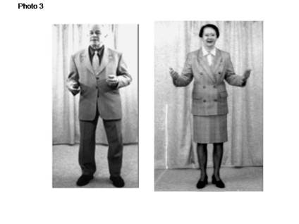 bras esquissent un geste d’accueil, mais, hélas, le corps est déjeté, les pieds mal positionnés. Le support de la parole, le corps, adopte une attitude de fausse décontraction accrocheuse qui révèle